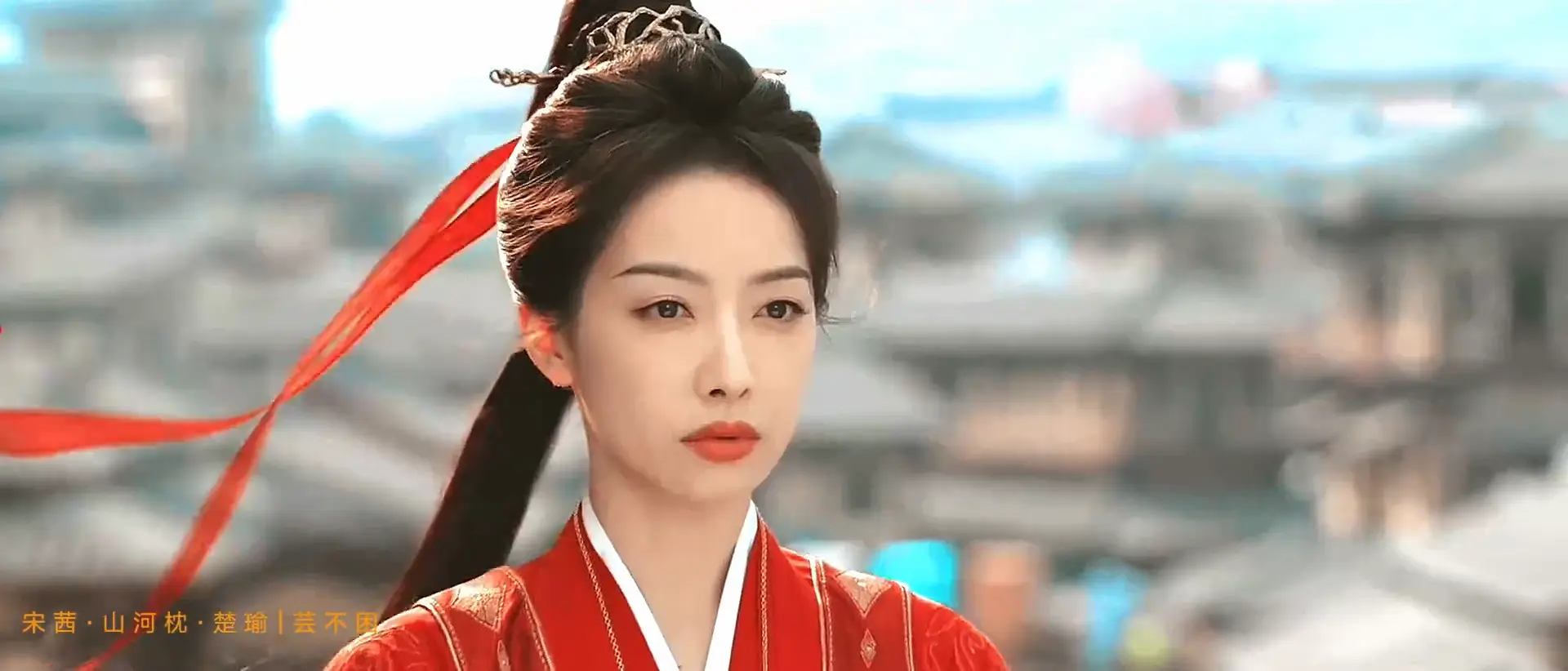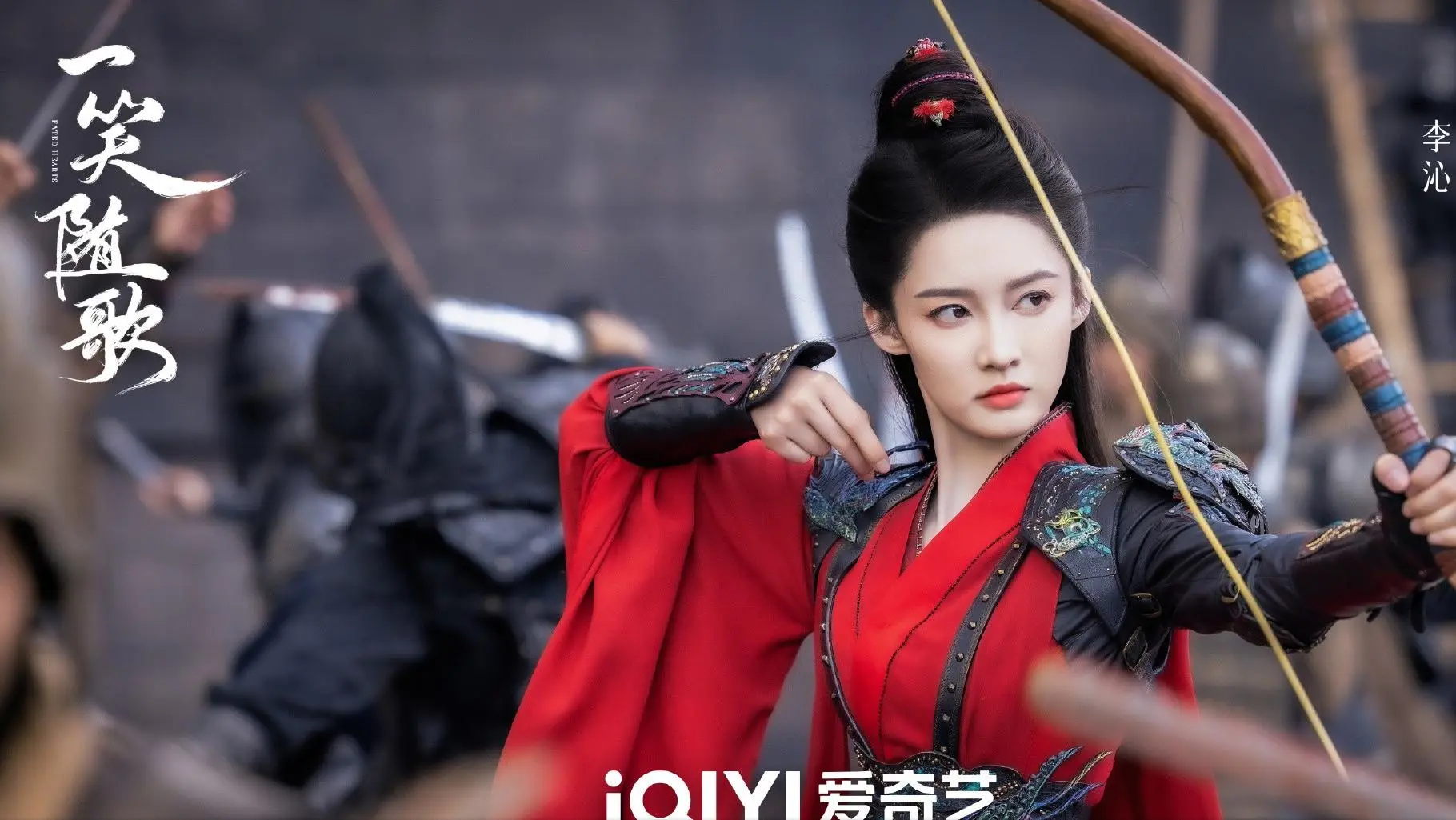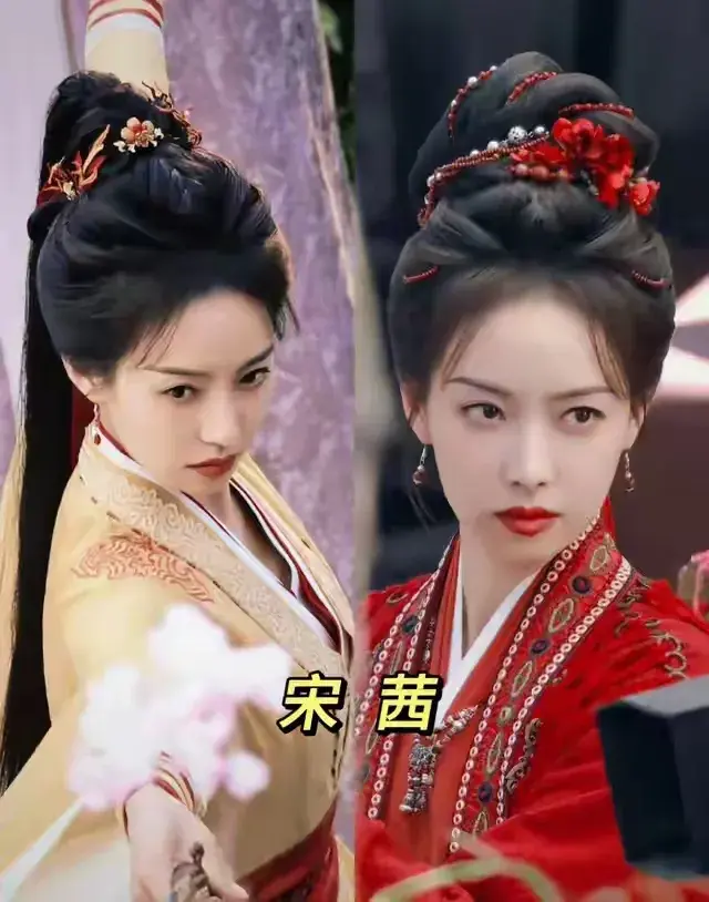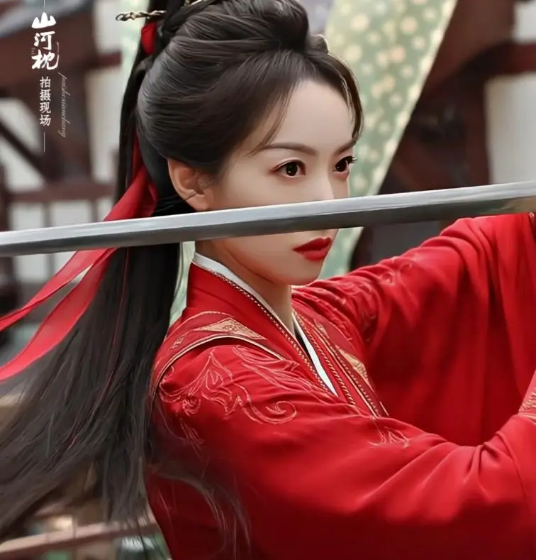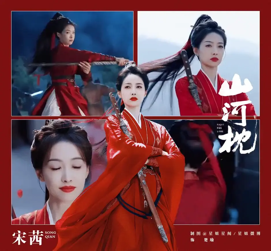 李沁饰演的付一笑,是锦绣国的红衣女射手,从死士营杀出来的女将军。而《山河枕》宋茜扮演的楚瑜也基本是一身红衣,只不过设定是武艺高强的将门虎女,后期也要上战场,和男主并肩带兵作战。