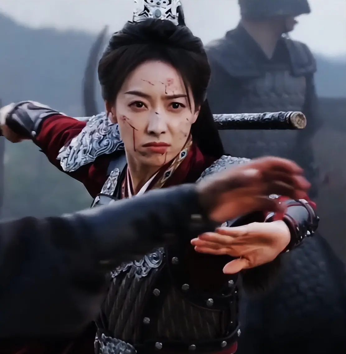 李沁眼神里有杀气,很凌厉,打戏身段、眼神都很到位,让人感到严肃认真,有女将风采能让人信服。